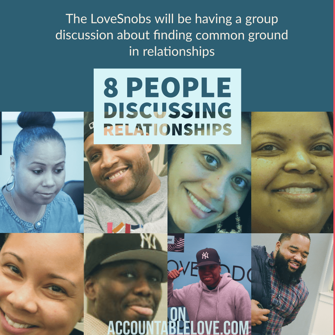 In this podcast Finding Common Ground, men and women search for common ground between the sexes. We are all caught up in what makes us different. But, we hardly discuss what makes us the same. How can we problem-solve if we can’t communicate with one another? The LoveSnobs are joined by Jasmine, Mahagony, Chris, Xavier, Laura, and Precious to discuss how we can speak more effectively with friends and partners. The group discusses prejudgments we may have before entering a relationship. They talk about what we can work on to strengthen our relationships. They share stories, laugh, and work toward common ground. Finding Common Ground is a podcast about getting on the same page. Listen, Learn, and Enjoy!